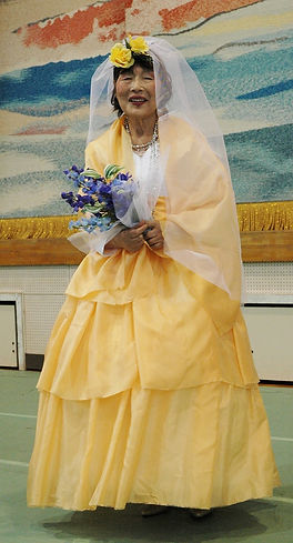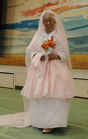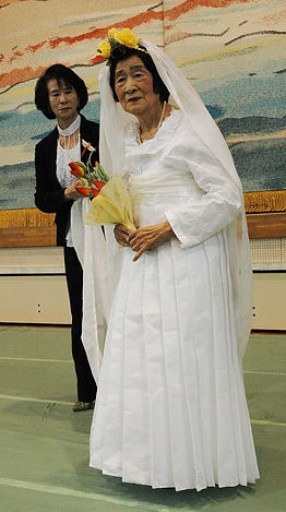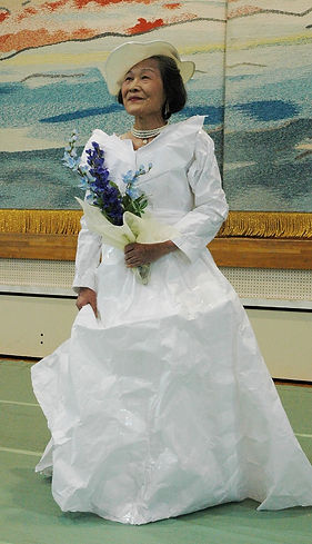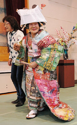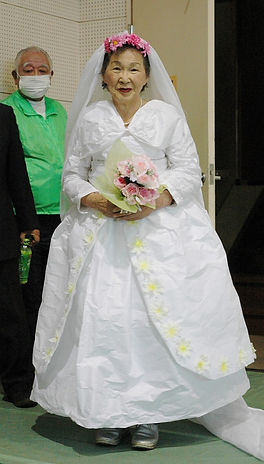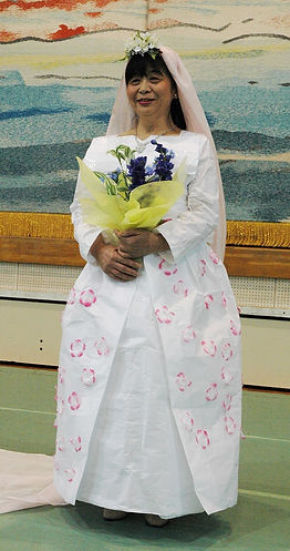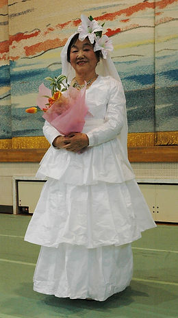 障子紙や新聞紙でブライダル衣装を制作しました。モデルは全員会員の方です。